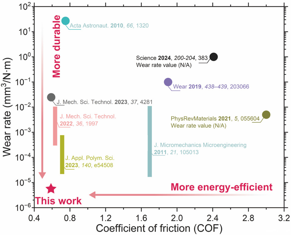 伟德体育下载教程视频秦立果团队和杨森教授团队采用磁辅助3D打印定制化打印区域的机械性能,所制备的传感器封装层耐磨性能远超同类(见图2)。研究团队创新性地在打印体系内加入由磁诱导制备的二维纳米链条作为增强相,在不增加柔性基底刚度的同时,克服其摩擦系数高(本工作相比纯聚二甲基硅氧烷降低了27.7%)及耐磨性差的难题。在长时间的寿命试验中,定制化的传感器表现出了优异的抗磨损性能,定制化的封装层可以推广至更多的柔性穿戴器件。在传感层方面,利用分子动力学揭示了液态金属本征亲柔性基底的特点,通过机械外力破除其氧化层使其更好地与基底粘接,实现可控的液态金属打印。这一工作为可穿戴设备长期服役带来了一种新的设计方法,可以有效地保护传感器延长其使用寿命,推动柔性穿戴设备领域发展。